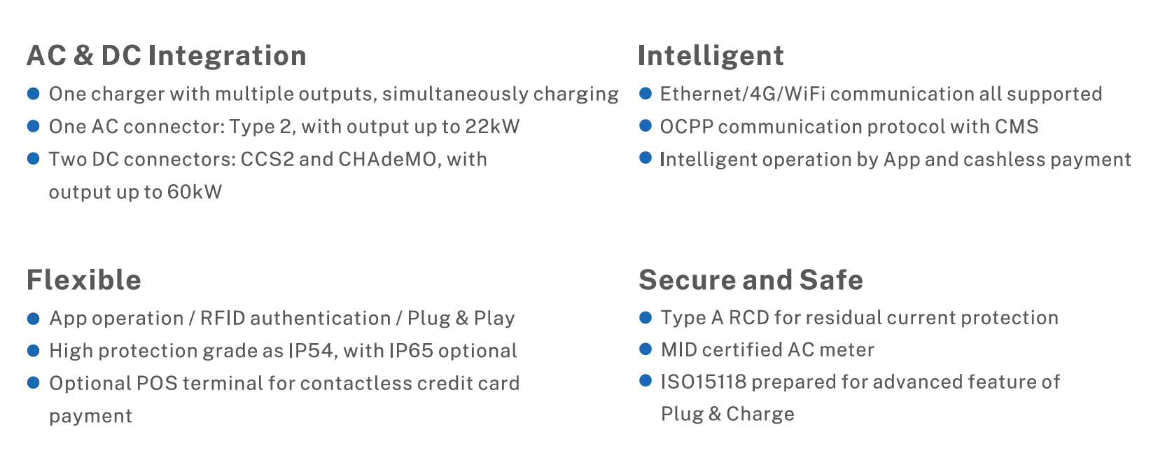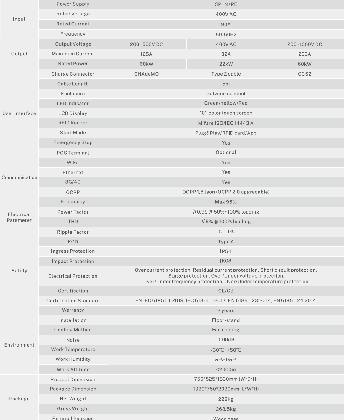 Support GBT/CCS-2/CCS-1/CHAdeMO connector(or Socket)(optional);